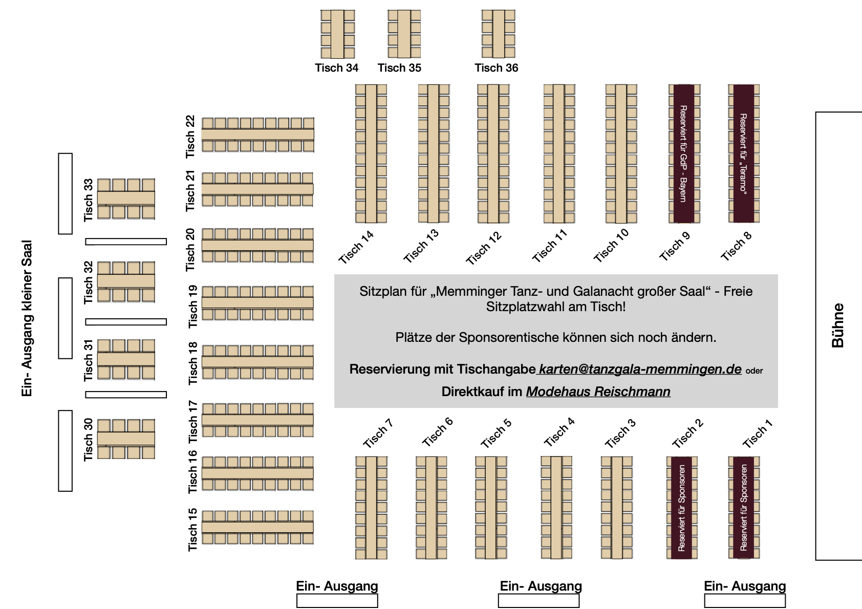Suchen Sie sich Ihre Lieblingsplätze aus und geben Sie diese bitte in der Vorbestellung per Mail an: This email address is being protected from spambots. You need JavaScript enabled to view it. oder direkt hier: ZU DEN KARTEN! Es kann sein, dass es zu Überschneidungen kommt und Plätze bereits vergeben sind, die noch als verfügbar angezeit werden. Der Plan wird nicht regelmäßig aktualisiert. Fragen Sie gerne nach! Gekaufte Karten werden nicht zurückerstattet. Es gelten die AGB´s!